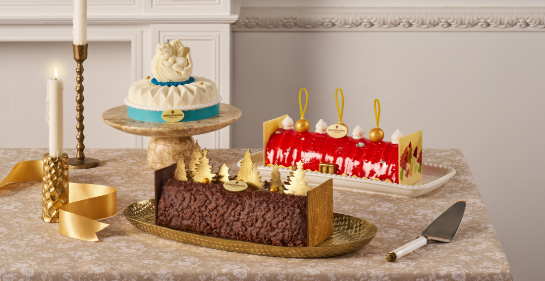 L to R - Mont Blanc Éclat Yule Log, Spiced Citrus Noir Yule Log and La Cerise Royale Bûche De Noël
